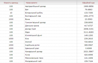Такі дані опублікували на сайті Національного банку України.