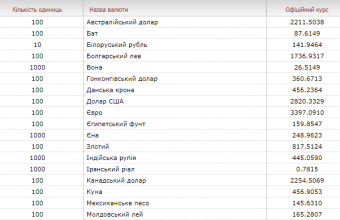 НБУ встановив офіційний курс гривні на рівні 28,20 за долар (5 січня – 28,01) і 33,97 – за євро (5 січня – 28,80).