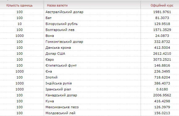 НБУ зафіксував офіційний курс гривні на рівні 26,1242 за долар (у середу – 26,0875) та 30,7325 – за євро (у середу – 30,7519).