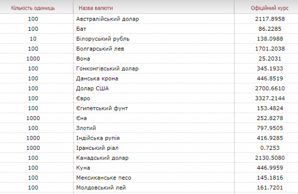 НБУ встановив офіційний курс гривні на рівні 27,0066 за долар (26 лютого – 26,9887) і 33,2721 – за євро (26 лютого – 33,1934 ).