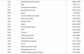 НБУ встановив офіційний курс гривні на рівні 27,11 за долар (7 грудня – 27,10) та 31,96 – за євро (7 грудня – 32,03).