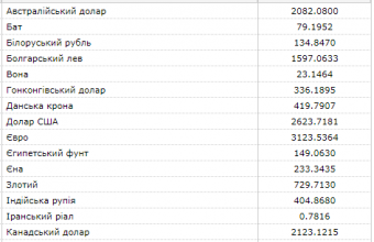 НБУ встановив офіційний курс гривні на рівні 26,23 за долар та 31,23 – за євро.