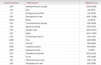 Такі дані опубліковані на сайті Національного банку.