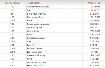 Такі дані опублікували на сайті Національного банку України.