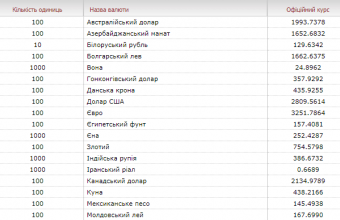 Національний банк України зафіксував офіційний курс гривні на рівні 28,0956 за долар (у вівторок – 28,2007) та 32,5179 – за євро (у вівторок – 32,6310).