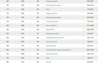 Національний банк України зафіксував офіційний курс гривні на рівні 25,5903 гривні за долар (у вівторок – 25,7350) та 28,6279 – за євро (напередодні – 28,7769).