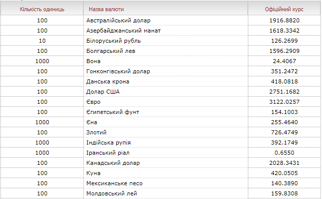 Національний банк України зафіксував офіційний курс гривні на рівні 27,5117 за долар (у четвер – 27,6883) та 31,22 за євро (напередодні – 31,7141).