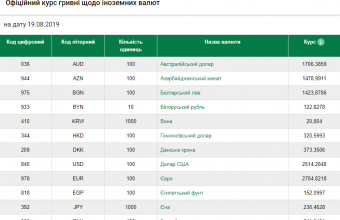 Національний банк України зафіксував офіційний курс гривні на рівні 25,1428 гривні за долар (у п’ятницю – 25,3217) та 27,8482 – за євро (16 серпня – 28,2336).