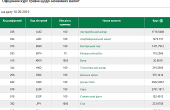 Такі дані опублікували на сайті Національного банку України.