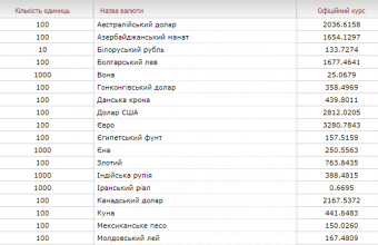 Національний банк України зафіксував офіційний курс гривні на рівні 28,1202 за долар (у середу – 28,1510) та 32,8078 за євро (у середу – 32,9282).