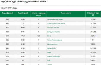 Національний банк України послабив офіційний курс гривні на 11 копійок.