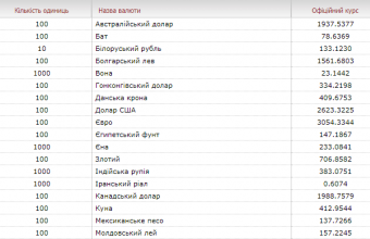 Такі дані опублікували на сайті Національного банку України.