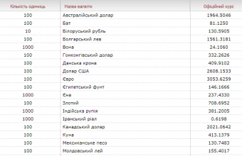 Національний банк України зафіксував офіційний курс гривні на рівні 26,0815 за долар (у середу – 26,0711) та 30,5362 – за євро (у середу – 30,7483).