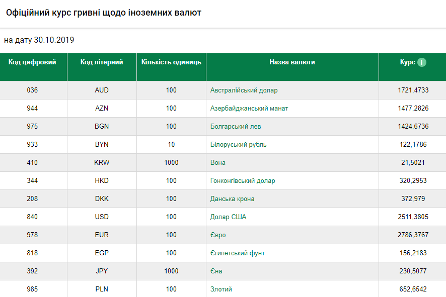 Національний банк України зафіксував офіційний курс гривні на рівні 24,9954 гривні за долар (у середу – 25,1138) та 27,7599 – за євро (напередодні – 27,8638).
