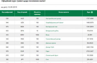 Такі дані опублікували на сайті Національного банку України.