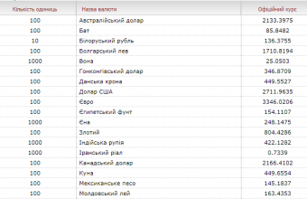 Національний банк України посилив офіційний курс гривні на 34 копійки – до 27,11 гривні за долар і 33,46 – за євро.
