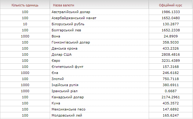 Такі дані опублікували на сайті Національного банку України.