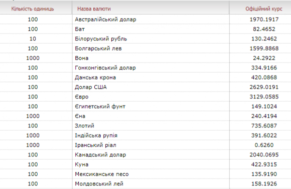 Національний банк зафіксував офіційний курс гривні на рівні 26,2902 за долар (у понеділок – 26,3055) та 31,2906 – за євро (у понеділок – 31,4851).