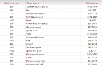 Національний банк зафіксував офіційний курс гривні на рівні 26,219 за долар (у вівторок – 26,2902) та 31,1219 – за євро (у вівторок – 31,2906).