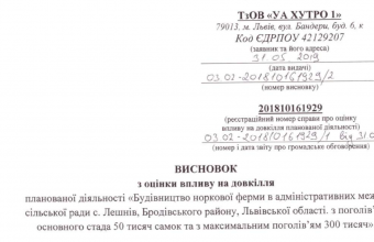 Еколог-розробник ОВД Дмитро Бучок додав, що майбутня норкова ферма не спричинить ніякої шкоди навколишньому середовищу та здоров’ю мешканців. На сайті Міністерства екології і природних ресурсів у реєстрі ОВД зареєстрований висновок департаменту екології і природних ресурсів Львівської облдержадміністрації, яким передбачені всі заходи для безпечної діяльності норкової ферми - у близькій і далекій перспективах.
