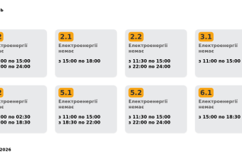 Група 5.1. Електроенергії немає з 11:00 до 15:00, з 18:30 до 22:00.