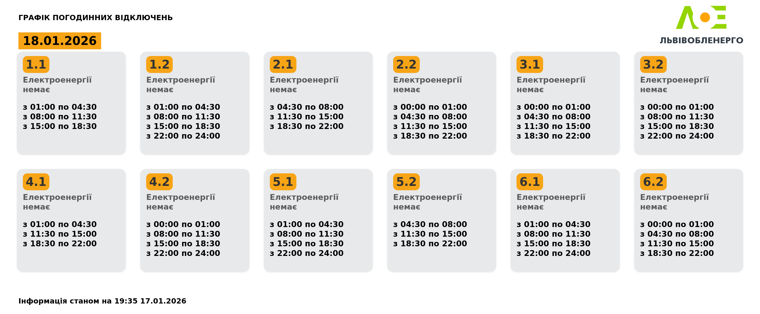 Неділя 18 січня. Графік вимкнення електроенергії на Львівщині