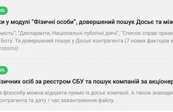 Банківський «FinScore» дозволить перевірити надійність банків; чотири ризик-фактори із «BI ProZorro» свідчать про ризики у держзакупівлях; розділ «Перевірка СБУ» розкаже про дезертирів і «зрадників» у модулі Фізичних осіб.