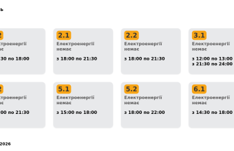 Група 5.2. Електроенергії немає з 18:00 до 22:00.