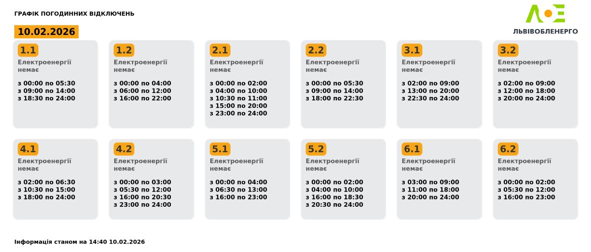 Графік погодинних відключень на 10.02.2026