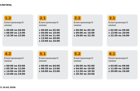 Львівобленерго оновило графік погодинних відключень на 10.02.2026, пише DailyLviv.com.