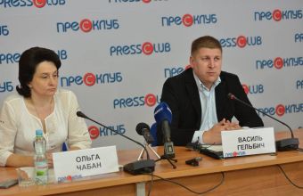 Під час прес-конференції Ольги Чабан і Василя Гельбича.