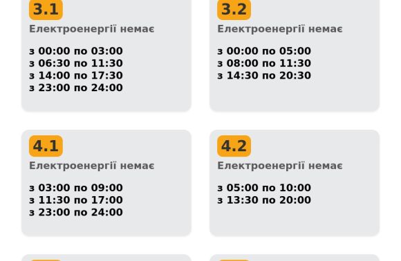 Група 3.1: світло буде до 23:00, після чого розпочнеться вимкнення до 24:00.