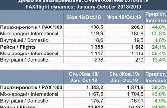 «Загалом, у січні-жовтні 2019 року пасажиропотік зріс на 39,3% в порівнянні з показником аналогічного періоду минулого року (1343,2 тисячі пасажирів) і досяг позначки в 1871,6 тисячі пасажирів. Кількість рейсів зросла на 24,9% (з 12 913 до 16 127», – поінформували також в аеропорту «Львів».