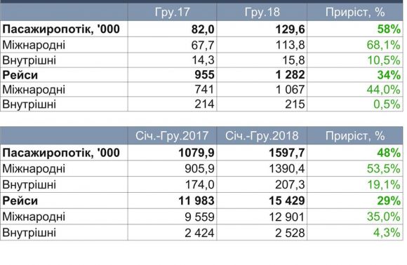У грудні 2018 року в аеропорту «Львів» побували 129,6 тисячі пасажирів – на 58% більше, аніж у грудні 2017-го.