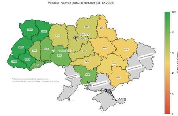 Інфографіку вимкнення електроенергії в Україні перед новорічною ніччю склали моніторингові канали, пише DailyLviv.com.