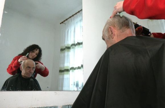 Перукарка Олена Бикова з Маріуполя. Живе на Львівщині у Сколе з вересня 2022 року. Перукарські послуги надає у місцевому штабі гуманітарної допомоги. Тут жінці допомогли облаштувати кімнату, де вона безплатно стриже переселенців.