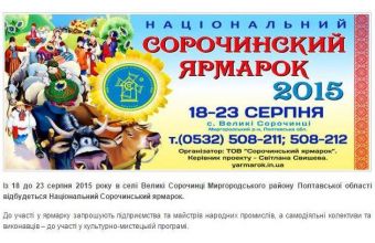 18-23 серпня в селі Великі Сорочинці Миргородського району Полтавської області відбудеться Національний Сорочинський ярмарок, до участі в якому запрошують підприємства й майстрів народних промислів, а долучатися до його культурно-мистецькій програмі пропонують самодіяльним колективам та виконавцям.