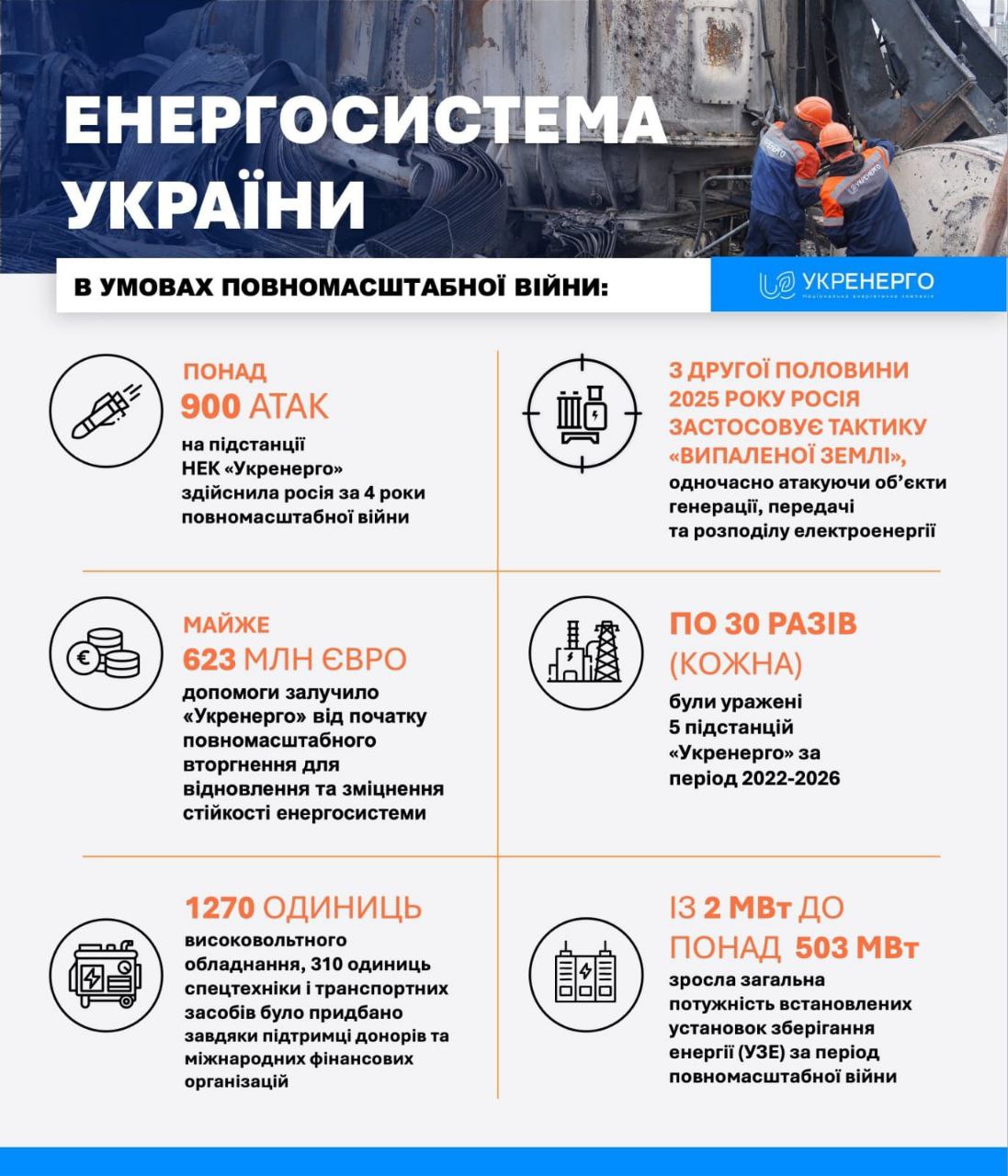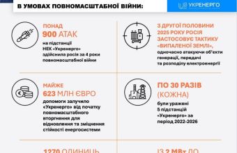 Підстанції Укренерго, починаючи з 2022 року, були атаковані понад 900 разів