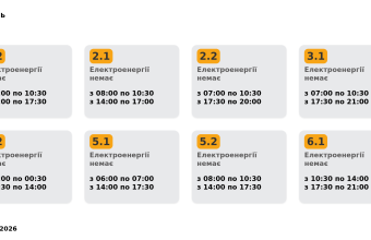 Група 1.1. Електроенергії немає з 06:00 до 07:00, з 10:30 до 14:00.