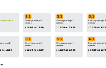 Група 2.2. Електроенергії немає з 12:00 до 15:30.