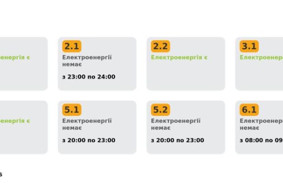 Група 2.1. Електроенергії немає з 23:00 до 24:00.