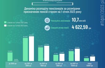 За даними Пенсійного фонду України, пише Dailylviv.com, в Україні 10,7 млн пенсіонерів, а середня пенсія становить 4,6 грн.