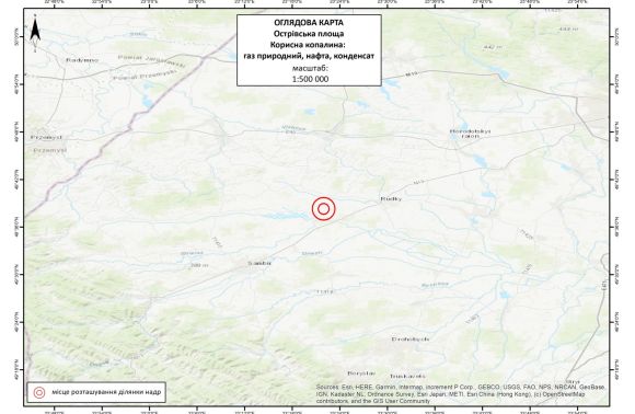 Вид корисної копалини: газ природний, нафта, конденсат. Вид користування надрами та строк, на який надають дозвіл: геологічне вивчення нафтогазоносних надр, у тому числі дослідно-промислова розробка родовищ, з подальшим видобуванням нафти і газу (промислова розробка родовищ), 20 років.