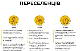 - Кожна родина, яка надала прихисток вимушеним переселенцям, щомісячно отримуватиме компенсацію у розмірі 450 гривень на оплату комунальних послуг (за кожного, кому надано прихисток).