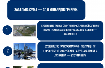 П'ятірка об'єктів Львівщини, на які витратили найбільше бюджетних коштів - не рахуючи доріг