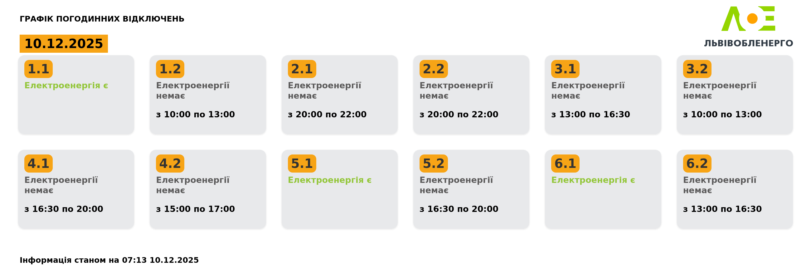 Ранковий графік 10 грудня. Більше світла для споживачів у Львівській області