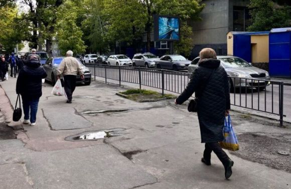 Стан пішохідної частини тут давно незадовільний - багато вибоїн та зруйноване покриття.