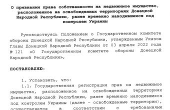 Радник мера Маріуполя Петро Андрющенко повідомив, що російська влада позбавила громадян України, які мешкають у Маріуполі, прав власності на нерухомість.