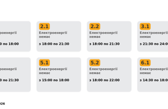 Група 2.2. Електроенергії немає з 18:00 до 21:30.