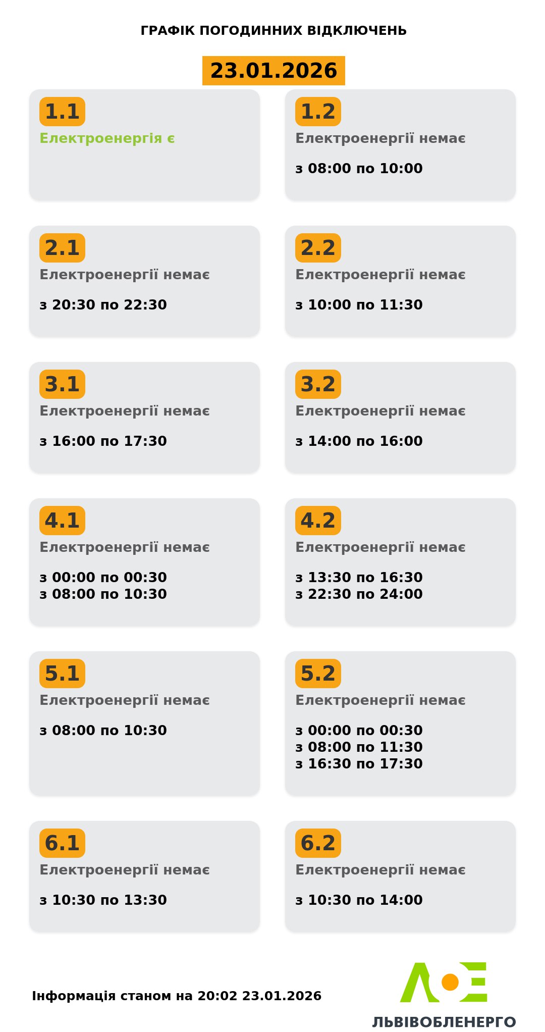 До теми: Що скасував новий графік енергопостачання 23 січня у Львівській області